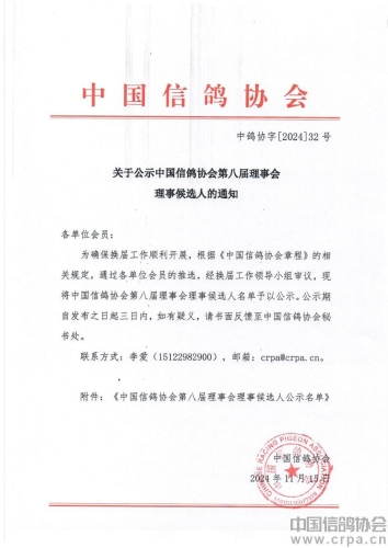 关于公示中国信鸽协会第八届理事会理事候选人的通知