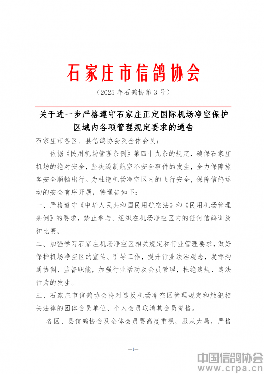 关于进一步严格遵守石家庄正定国际机场净空保护区域内各项管理规定要求的通告