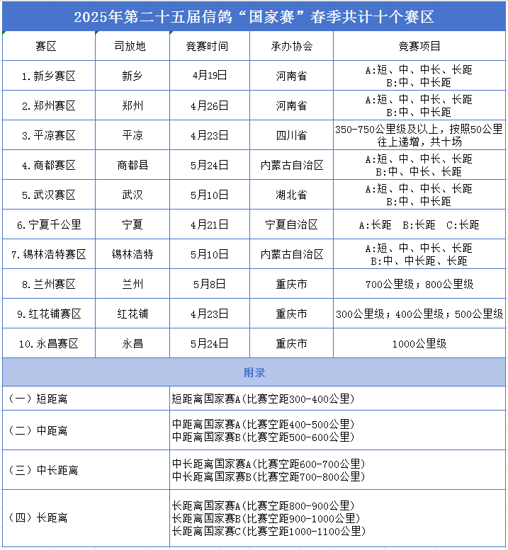 2025年信鸽国家赛日程正式公布 四月等你来战