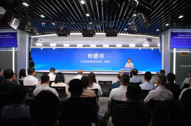 8月22日,2025河北赛事经济高质量发展研讨会在石家庄长城新媒体冀云融媒中心召开,河北省体育局党组成员、副局长田建功,长城新媒体集团党委副书记、总编辑王悦路出席开幕式并致辞。