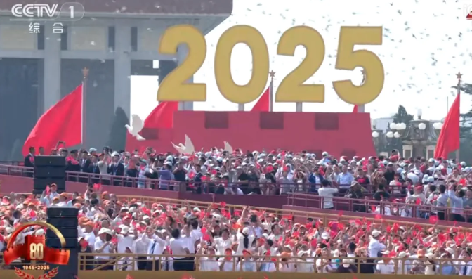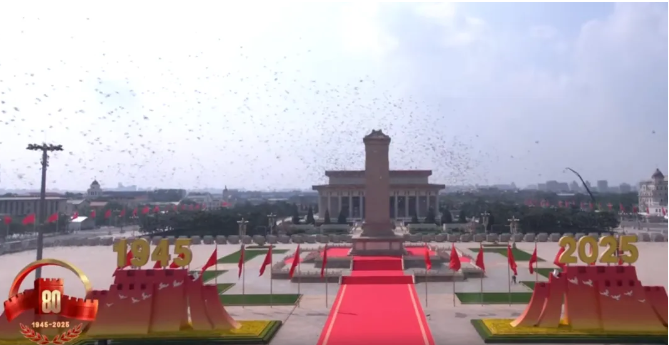 2025年9月3日上午,纪念中国人民抗日战争暨世界反法西斯战争胜利80周年大会在北京天安门广场隆重举行。一场盛大的阅兵仪式,如同一座历史的丰碑,屹立在时光的长河中,与世界人民一同铭记这个伟大的日子。 当《歌唱祖国》的激昂旋律响彻天安门广场上空,全场热血沸腾,8万羽和平鸽宛如天使般展翅高飞,它们以天空为画布,用翅膀绘就和平的壮丽画卷。这和平鸽,是岁月的使者,是历史的见证,更是中华民族对和平不懈追求的象征。