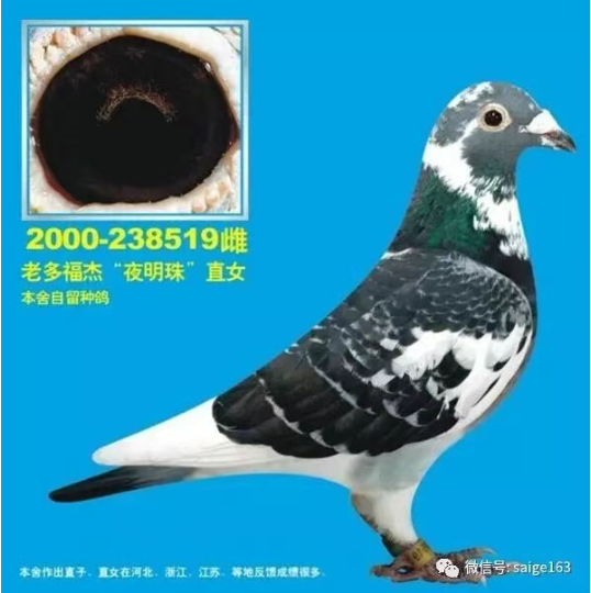 雌鸽如果是花头白翅通常会有浓眼,标准 配法是配白砂眼。在近亲育种中,双亲的羽色、眼砂要采取异质配, 差异越大,遗传优势越明显。引种买雌不买雄,因为雌鸽的定向能力遗传大于雄。