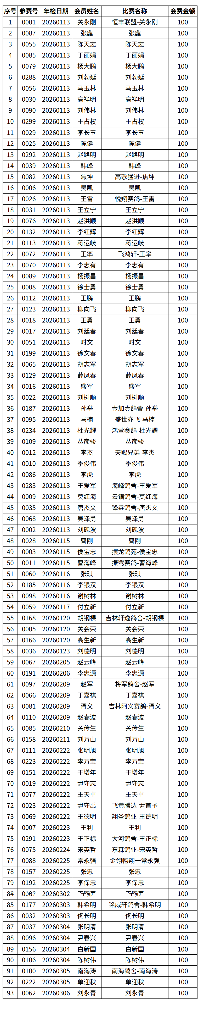 海东青赛鸽俱乐部2026年度会员明细